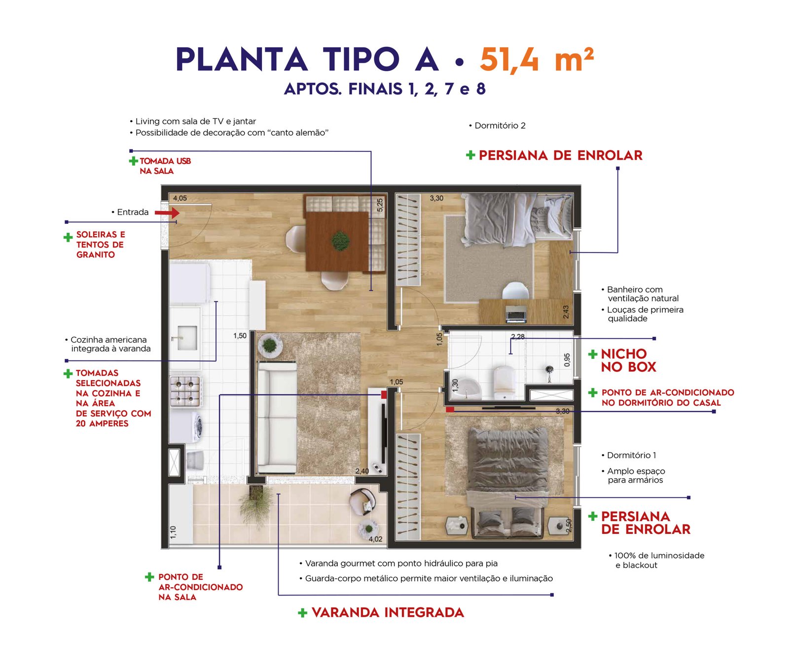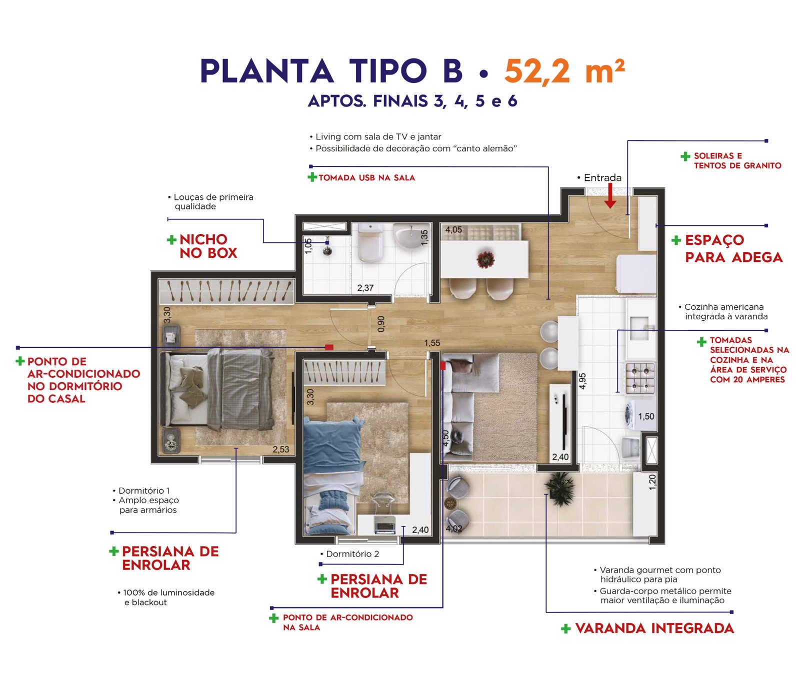 • TIPO: 2 DORMS. + VARANDA INTEGRADA