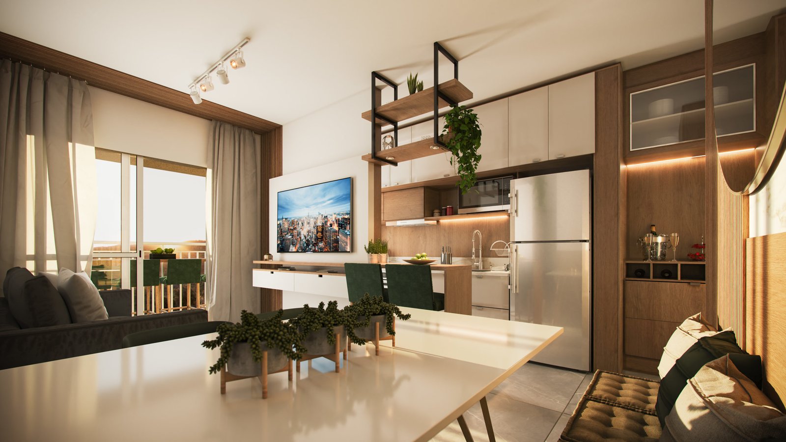 2 DORM., SALA COM VARANDA INTEGRADA
